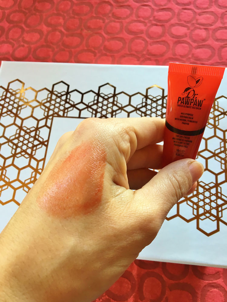 Este es el producto que más me ha gustado. Se trata de un bálsamo de color rojo que sirve para dar un color natural a labios y mejillas. Con muy poco producto te da un suave color rojizo saludable a rostro y labios. Sus ingredientes son naturales y está libre de perfumes. El producto original sin color sirve para el cabello, cutículas, piel seca, labios… un montón de aplicaciónes… en definitiva… un producto de botiquín.