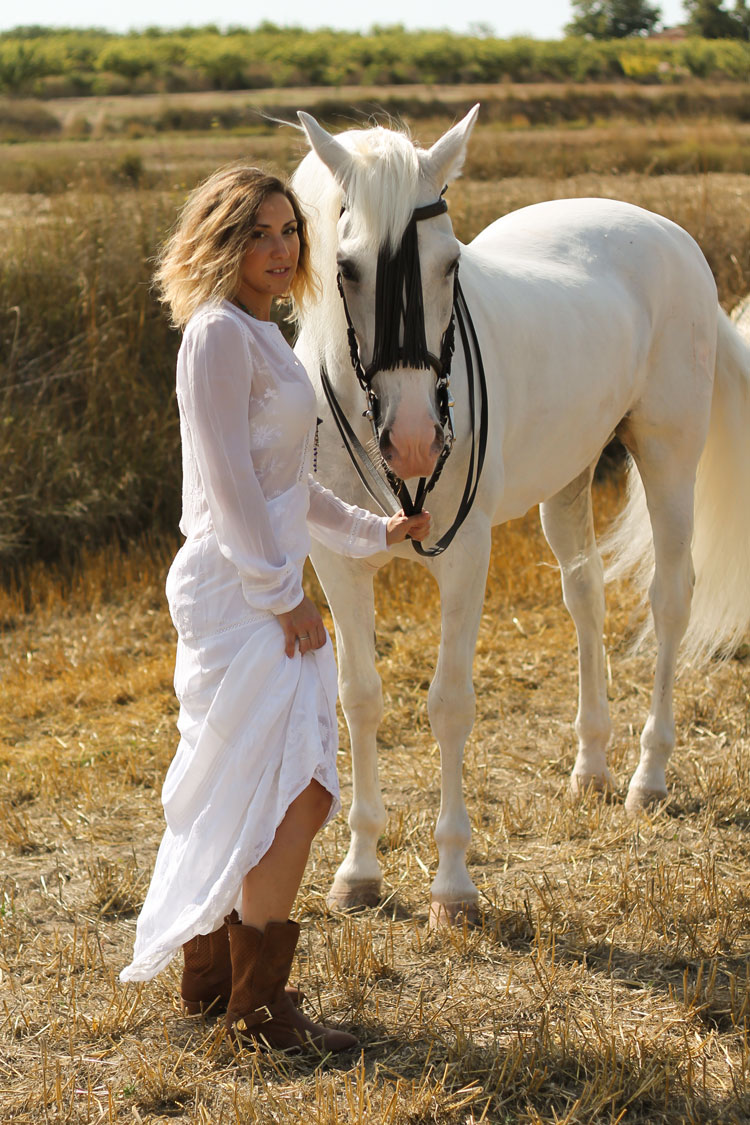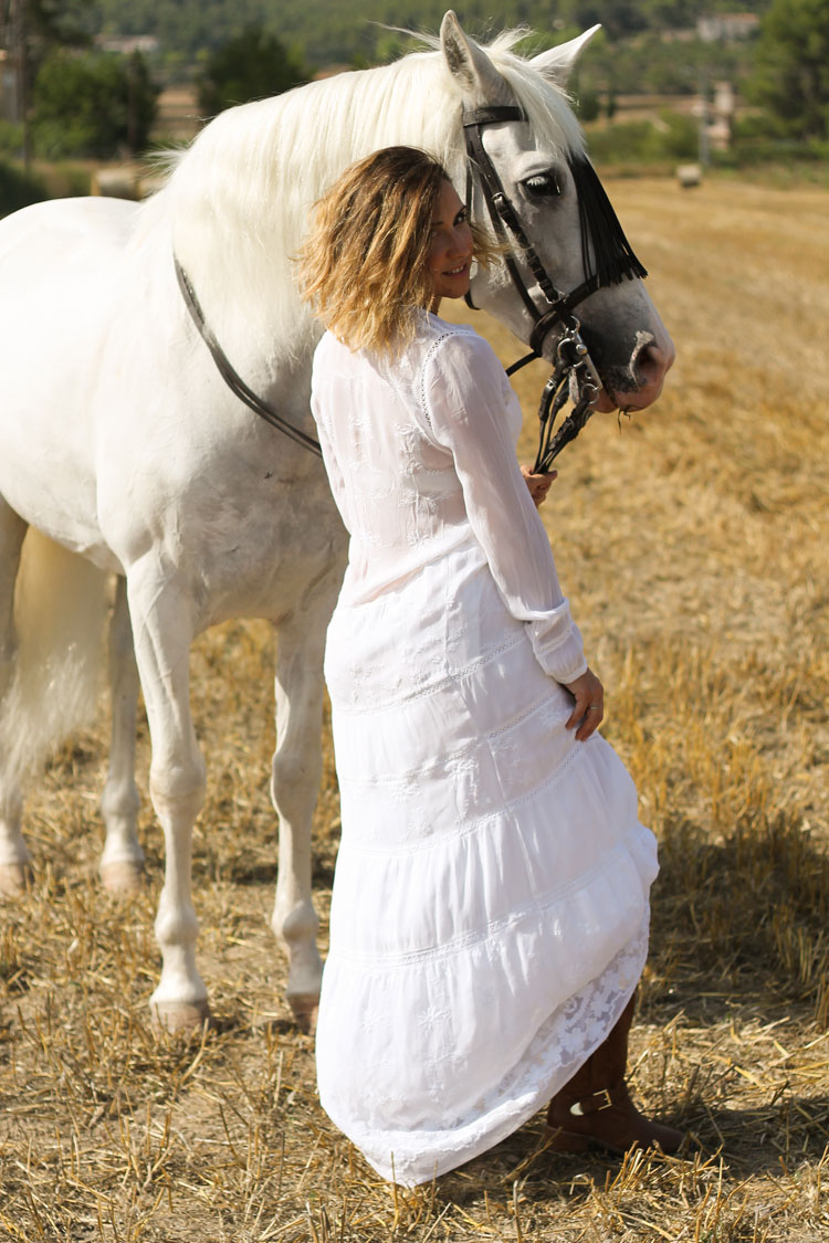 Para ello elegí un espectacular vestido ‘boho chic’ en color blanco con motivos de flores bordadas del mismo color,  separando las diferentes partes del vestido con entredos de crochet. Un fondo de armario clásico que todas deberíamos tener, y que algún día nuestras hijas heredarán, este no pasa de moda y es una muy buena inversión.