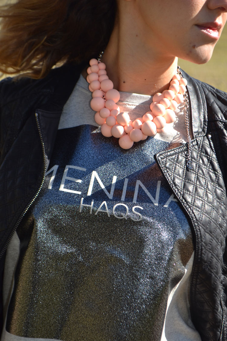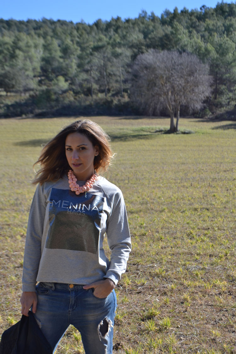 Con la sudadera MENINA de Haqs se me ocurre combinarla con falda midi, mini o large, de gasa o de cuero, sobre camisa de cuadros o vaquera…. se me llena la cabeza de ‘outfits’!!!!