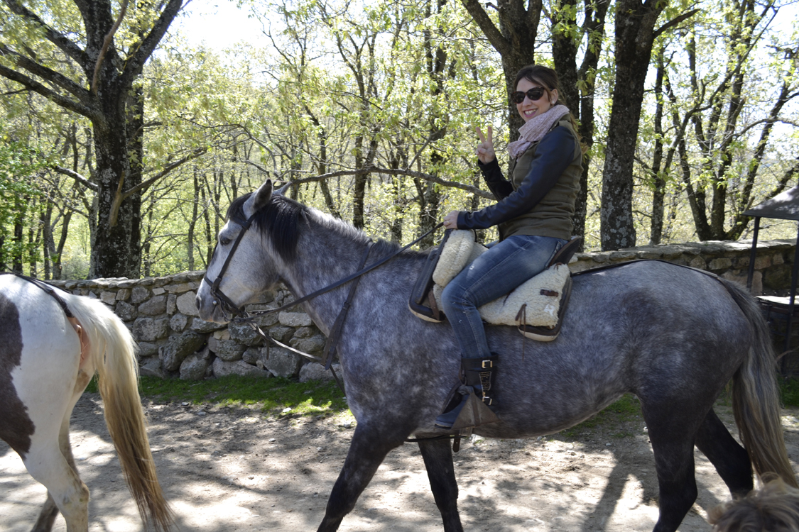 El primer día pudimos disfrutar de un precioso paseo a caballo con el Centro Hípico Los Ciruelos, por la sierra de Guadarrama a los pies de Siete Picos, entre robles, pinos y un riachuelo que nos acompañó durante todo el camino.