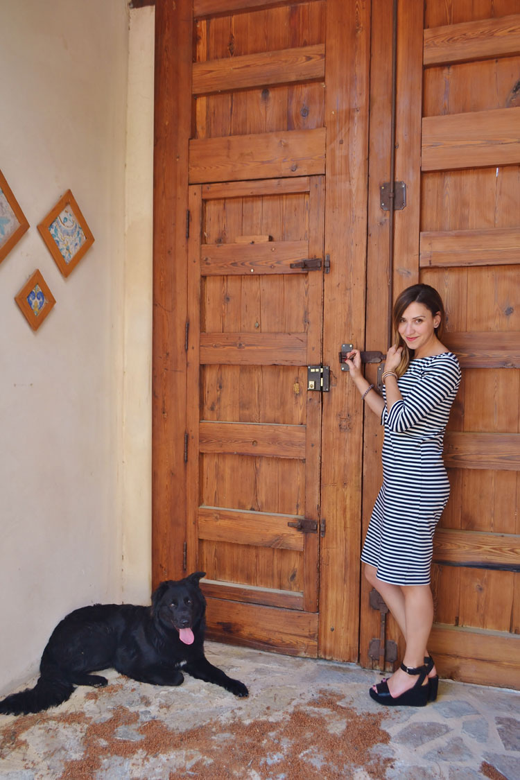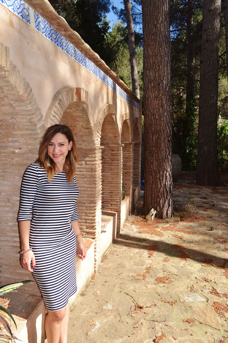 El sábado para ir de comida familiar, me decidí por este vestido de rayas que customicé con la ayuda de mi madre… era más largo, de manga larga y cuello caja. Así que le dije que me lo hiciera un poco más corto, media manga y cuello barca… a ver que os parece…