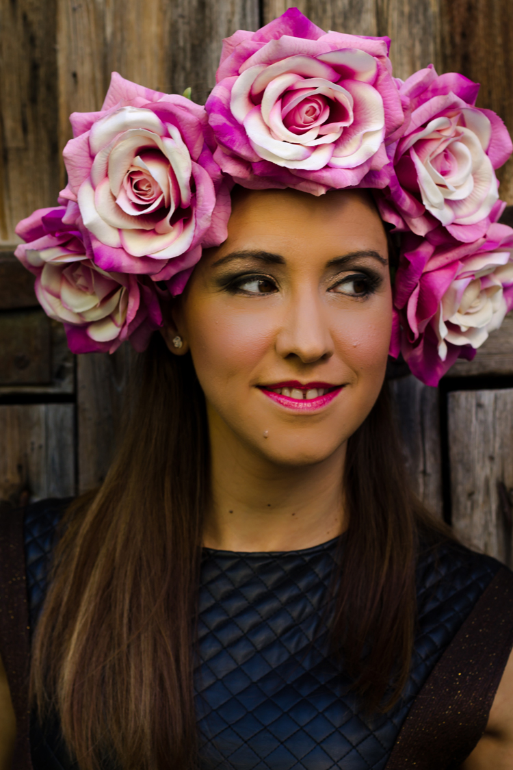 El elegante vestido se completó como habéis podido ver con una bonita corona de rosas de la floristería ‘La Barraca’ para darle un toque de color y un aspecto más primaveral. Y este fue el resultado!!! Yo creo que maravilloso!!! 😉