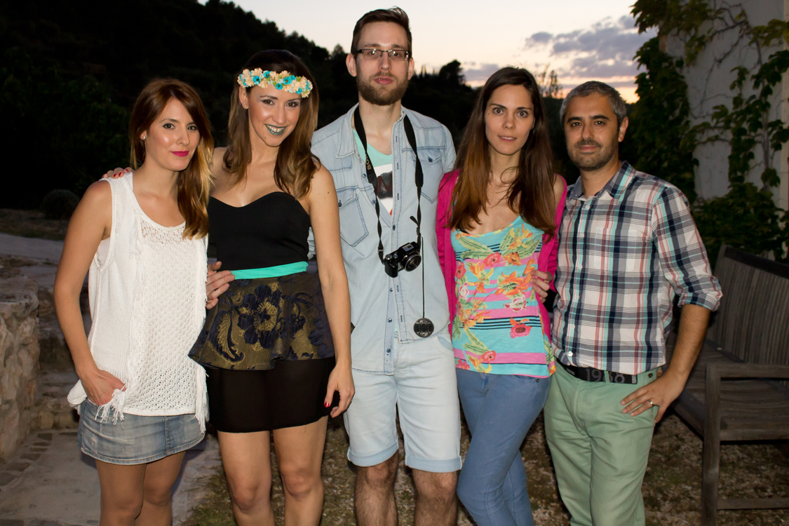 De izquierda a derecha: Núria López (Hair & Makeup artist), yo, Aarón Fernandez (diseñador), Silvia (ayudante diseñador), y mi hija María.