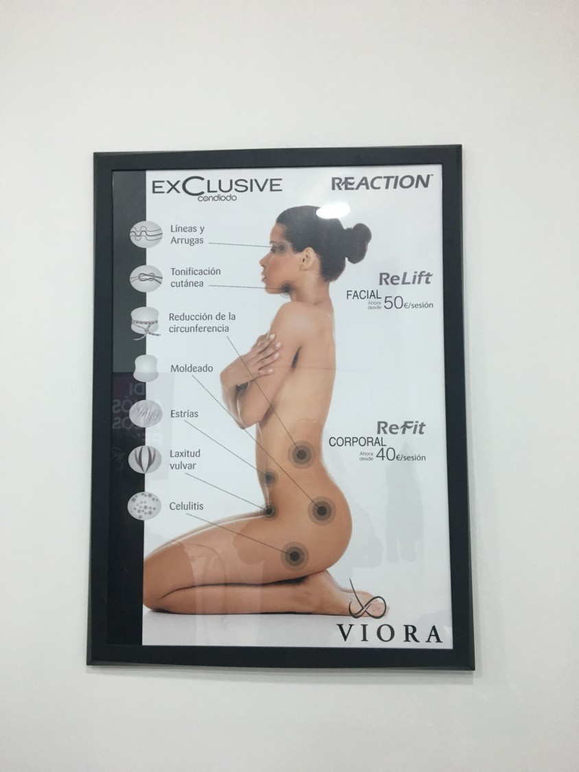 El Reaction de Viora trata cualquier parte del cuerpo, piernas, glúteos, abdomen, brazos.. y sus problemas, celulitis, firmeza, cicatrices, incluso estrías. En facial trata firmeza, líneas de expresión, arrugas, etc… en escote, axilas, cuello, mandíbula, mejillas, cejas…