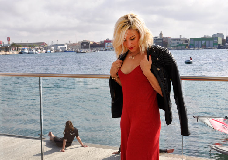 Y eso mismo hice… aunque hacía un poco de viento, al sol se estaba genial, con calor, si mantenía la ‘perfecto’ puesta. Así que fuera cazadora de cuero… Me quedé solamente con el mono rojo de canalé, ligero, cómodo y lo mejor, fenomenal de precio!!! También está en gris y en negro, perfecto para verano.